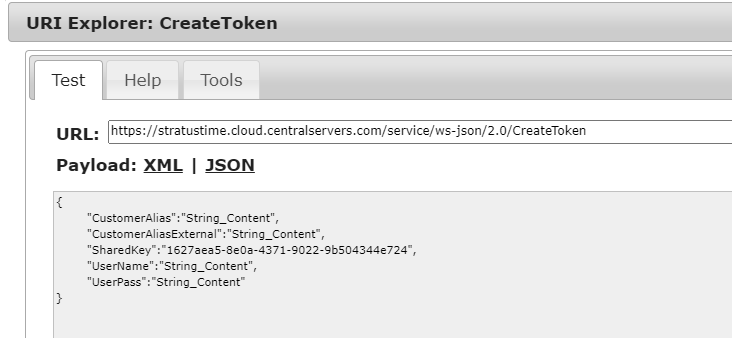 Before any communication can take place with the TWS a security token must be established. The web service method used to create the secure token is called "CreateToken" below is the following JSON format used to send as the POST payload for the token."CustomerAlias":"{{CLIENT_ALIAS}}",